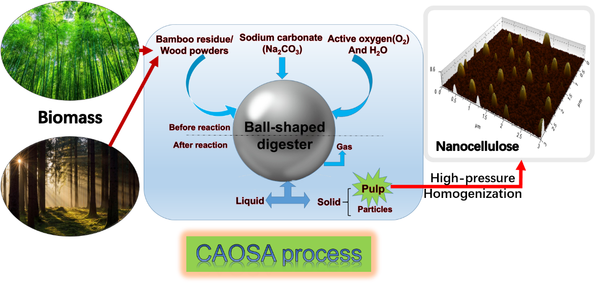 论文报道了CAOSA蒸煮及H2O2漂白作为预处理生物质(木粉和竹粉)的手段,并结合高压均质制备球形纳米纤维素(NCC)的研究。制备得到高结晶度的NCC,NCC悬浮液具有良好的稳定性。通过SEM,TEM及AFM表征互相印证了NCC呈类球形,直径在10~40nm。本研究采用CAOSA辅助HPH预处理是一种高效环保的NCC分离方法,整个过程使用的无毒化学品减少了环境污染。作为功能载体的球形NCC在药物载体、薄膜材料添加剂、抗菌材料等领域具有广阔的应用前景。
