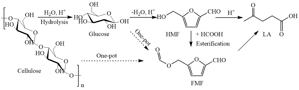 课题组首次报道了在甲酸体系中催化转化纤维素一锅法制备5-甲酰氧基-甲基糠醛(5-[(formyloxy)methyl]furfural, FMF)。相对于HMF,FMF具有更好的疏水性和热稳定性,因而能够很容易地从混合产物中分离。FMF同时具有HMF类似的官能基团,因而可以作为替代HMF的新型生物基平台分子。相关成果发表在农林类一区杂志Ind. Crop. Prod. (2016, DOI: doi:10.1016/j.indcrop.2016.01.004),第一作者为2014级博士研究生蒋叶涛。